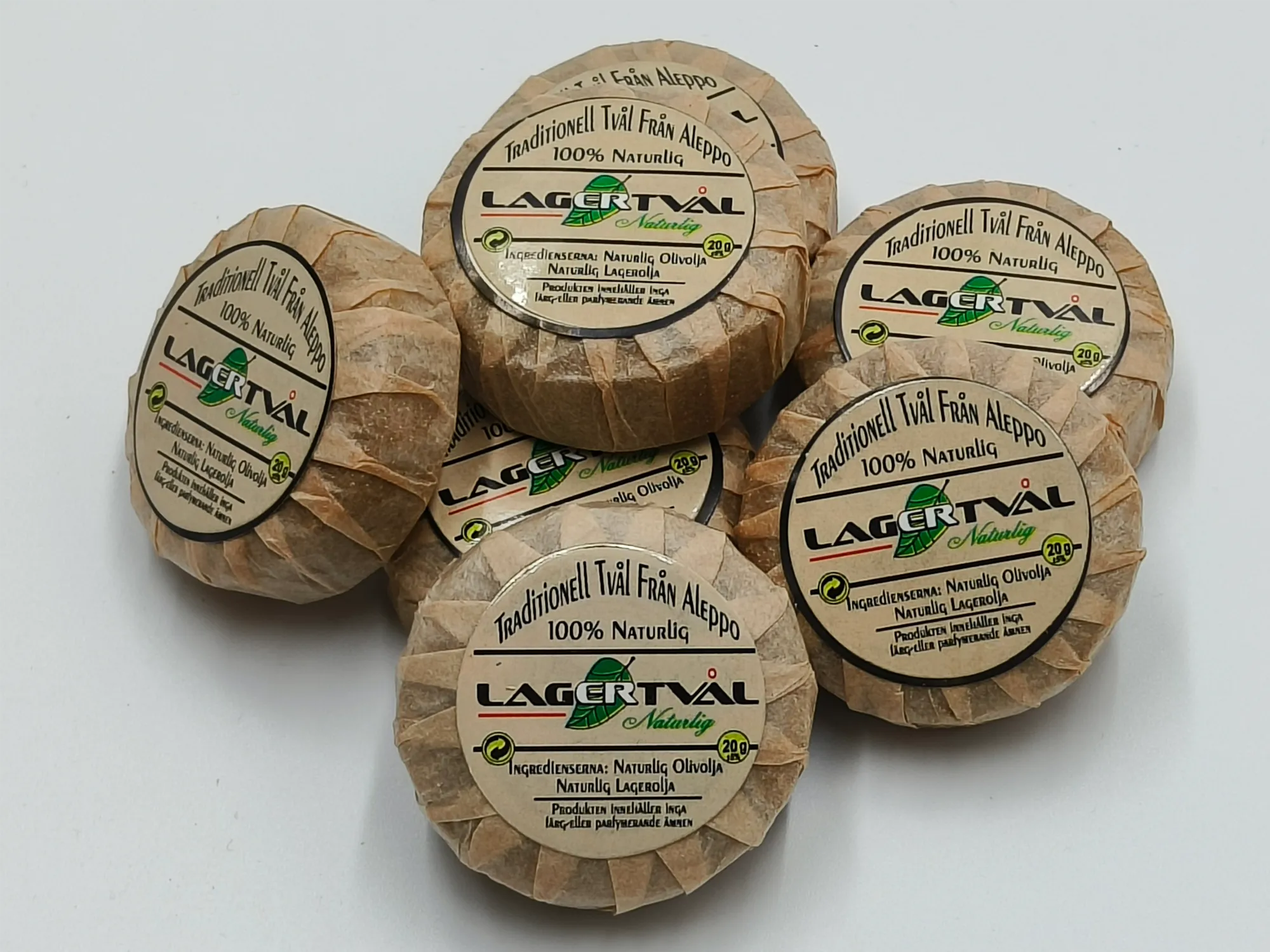 Gäst tvål rund form väger ca 25g med stilfull och praktisk form som är tillverkade enligt den traditionella Aleppometoden.
